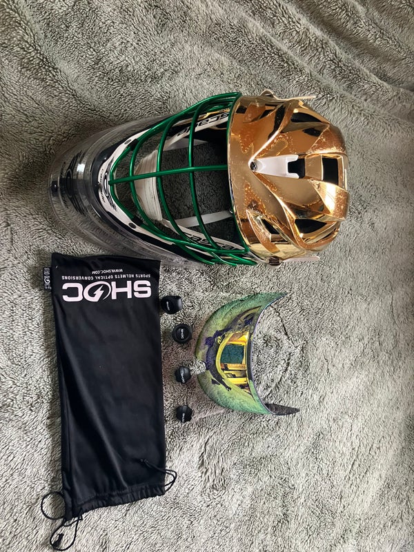 Chrome Gold Lacrosse Goalie Helmet, with matching SHOC Visor