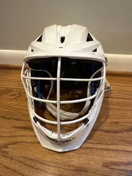 Used cascade XRS with small crack in jaw plastic as shown in picture as well as holes drilled in for goalie throat guard.