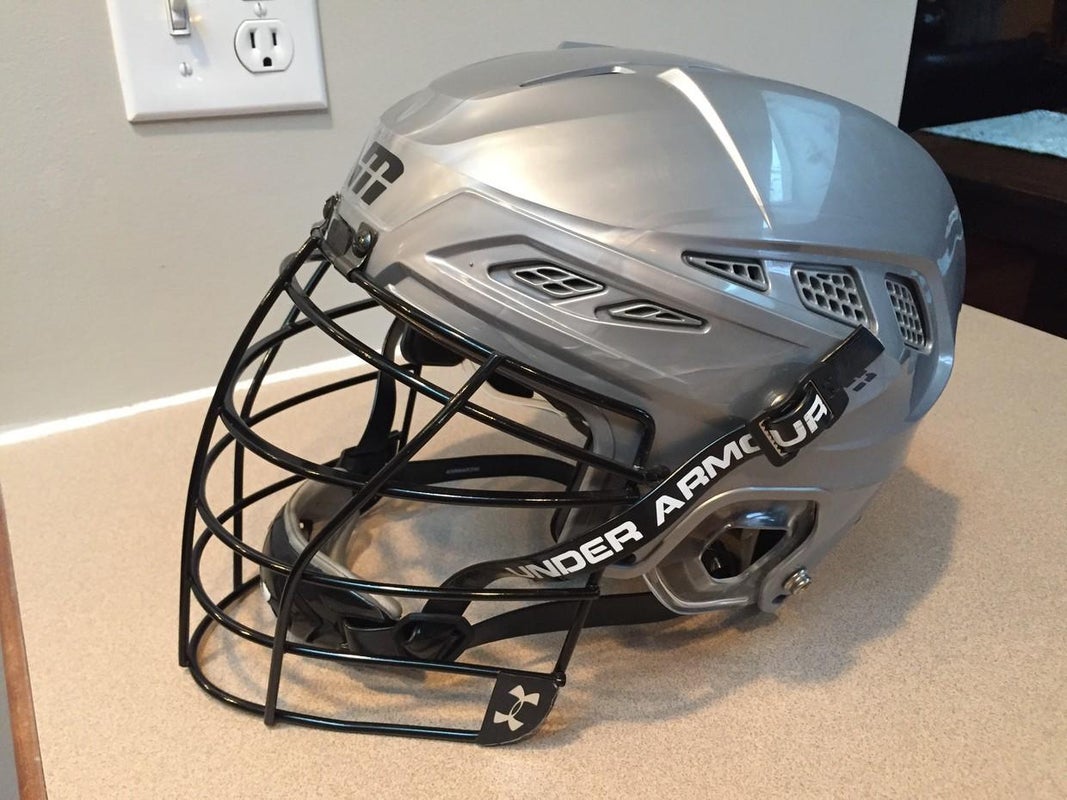 Cascade Messier M11 helmet with black Under Armour Pro Mask and Under Armour hard shell chin. Put this together and never wore it other than to check fit. Never seen the field. Size is large but does have SPR adjustment on back. Super Light with great visibility for Box play.