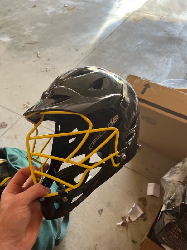 Brine lacrosse helmet, with a custom yellow mask.