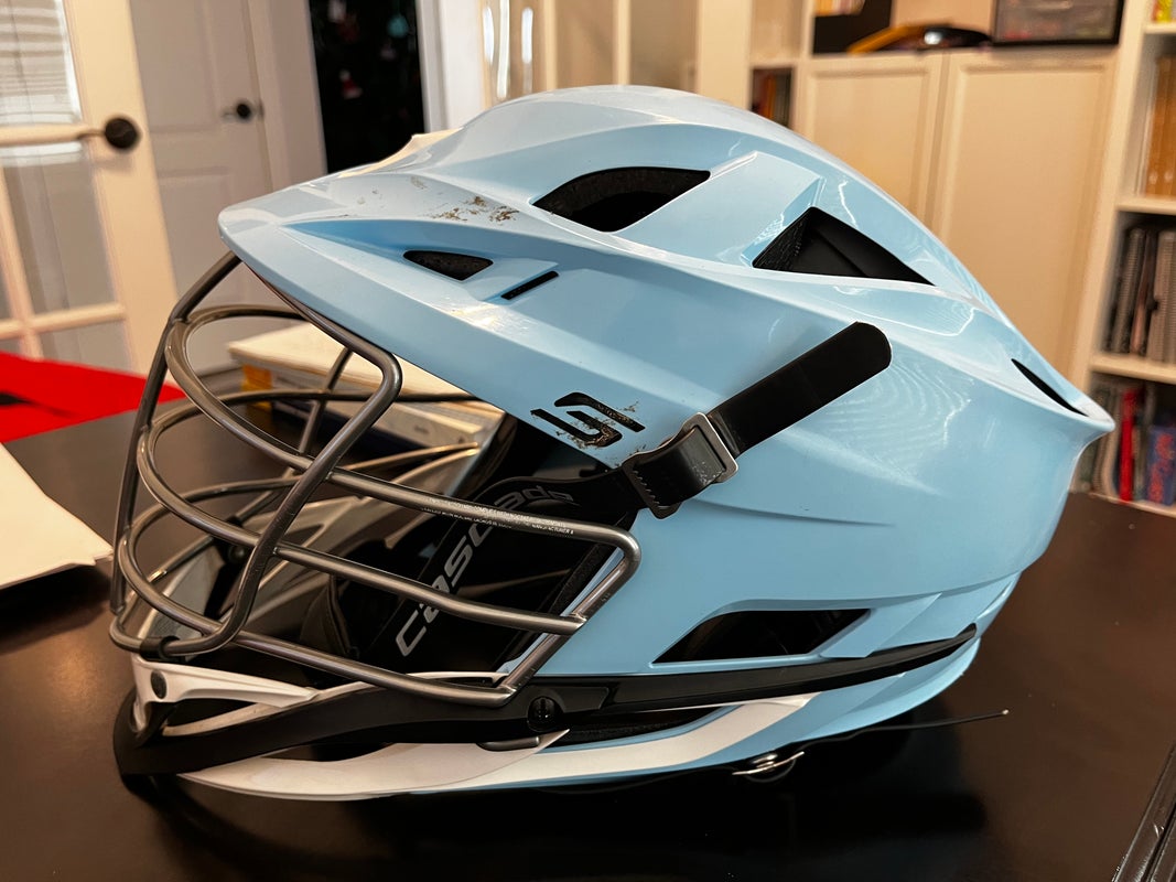 Used cascade S helmet, multiple seasons use, helmet is in good condition. Small chip in mask that has a little rust, small scratches in shell from normal use, a couple spots with previous decal residue, pads are clean and structure is sound. Was used as by a HS Varsity LSM/Close defender.