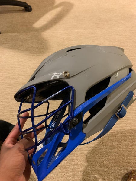 Cascade Matte Gray and Blue R with a chrome Blue face mask. It’s Lightly used played probably 7 games with it. There was a helmet wrap on it, so any marks on it are just scuffs from taking the wrap off.