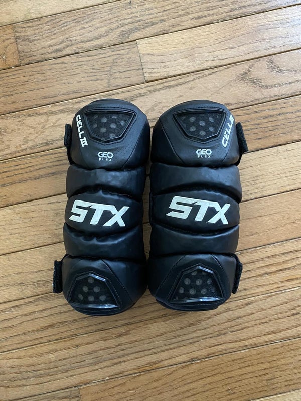 The third generation of pads in the Cell line, the Cell III’s were a step up from the previous generation. These were made with exclusive and new at the time STX technology, Geo-Flex, which provides impact resistance, mobility, and flexibility to the player. Unlike the last generation, the Cell III has a hard plastic elbow cap to provide the best protection to the player's elbow. The new strap system makes adjustment super easy and eliminates snagging on jerseys.