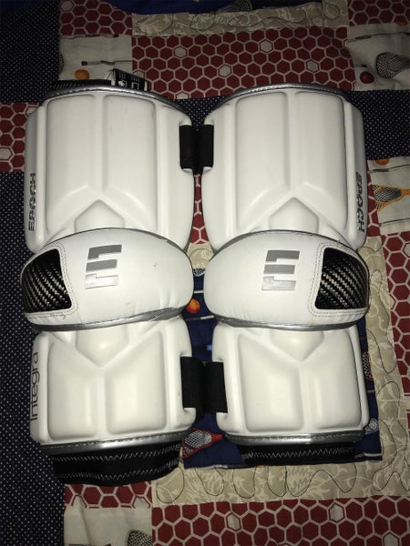The Epoch Integra lacrosse arm pads are made with lightweight, dual-density foam for flexibility and protection. They feature 4-way stretch spandex, elastic bands, silicone print to minimize slippage, and TPU reinforcement for comfort. The Sandwich Locking System ensures a secure fit, while the hard shell cap with carbon fiber reinforcement offers protection without restricting movement.