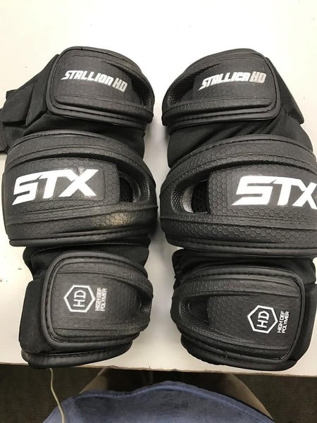 The STX Stallion HD lacrosse pads offer protection and comfort for players of all levels. Designed for full-length coverage from elbow to wrist, they feature a high-density polymer for superior impact resistance without added bulk. Their sleek design ensures maximum mobility on the field while providing robust protection.