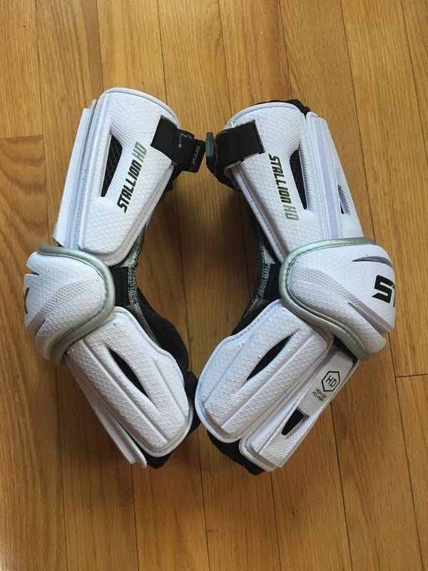The STX Stallion HD lacrosse pads offer protection and comfort for players of all levels. Designed for full-length coverage from elbow to wrist, they feature a high-density polymer for superior impact resistance without added bulk. Their sleek design ensures maximum mobility on the field while providing robust protection.