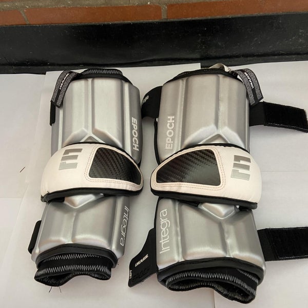 The Epoch Integra lacrosse arm pads are made with lightweight, dual-density foam for flexibility and protection. They feature 4-way stretch spandex, elastic bands, silicone print to minimize slippage, and TPU reinforcement for comfort. The Sandwich Locking System ensures a secure fit, while the hard shell cap with carbon fiber reinforcement offers protection without restricting movement.