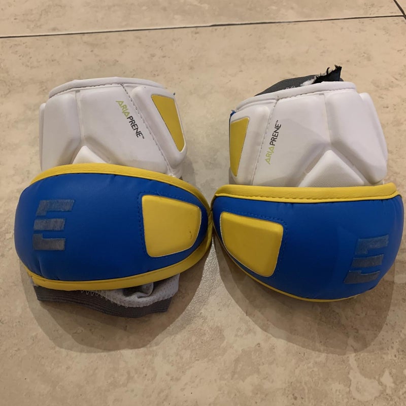 The Epoch Integra lacrosse arm pads are made with lightweight, dual-density foam for flexibility and protection. They feature 4-way stretch spandex, elastic bands, silicone print to minimize slippage, and TPU reinforcement for comfort. The Sandwich Locking System ensures a secure fit, while the hard shell cap with carbon fiber reinforcement offers protection without restricting movement.