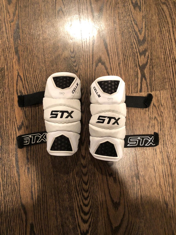 The third generation of pads in the Cell line, the Cell III’s were a step up from the previous generation. These were made with exclusive and new at the time STX technology, Geo-Flex, which provides impact resistance, mobility, and flexibility to the player. Unlike the last generation, the Cell III has a hard plastic elbow cap to provide the best protection to the player's elbow. The new strap system makes adjustment super easy and eliminates snagging on jerseys.