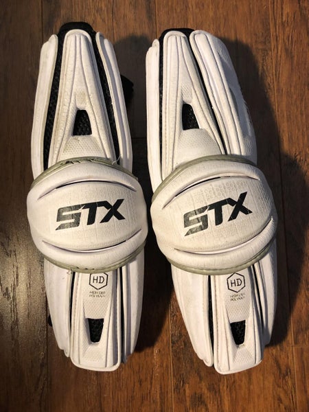 The STX Stallion HD lacrosse pads offer protection and comfort for players of all levels. Designed for full-length coverage from elbow to wrist, they feature a high-density polymer for superior impact resistance without added bulk. Their sleek design ensures maximum mobility on the field while providing robust protection.