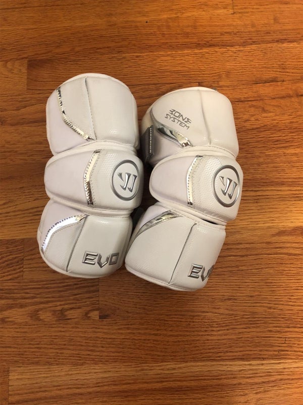 The Warrior Evo lacrosse arm pads offer excellent protection, comfort, and durability for players of all levels. It features a 9-piece construction with the Cage FLX system for better flex, Impax High-Density Foam for impact protection, and a No Slip Gel Print to prevent sliding. The VPS ensures breathability for added comfort. It's a top choice for quality arm protection in lacrosse.
