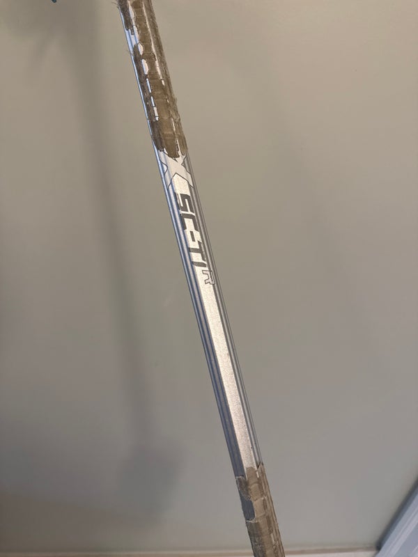 The STX SC-TI X shaft is a composite lacrosse shaft designed with a focus on durability and performance. Its titanium-infused construction offers a good balance of strength and lightweight feel, which helps improve shot speed and control without sacrificing endurance on the field. The shaft has a mid-range stiffness that suits players who want both power and some flex in their shots. This listing is for a used adult-sized shaft; exact length and weight may vary but are consistent with typical attack and midfield specifications.