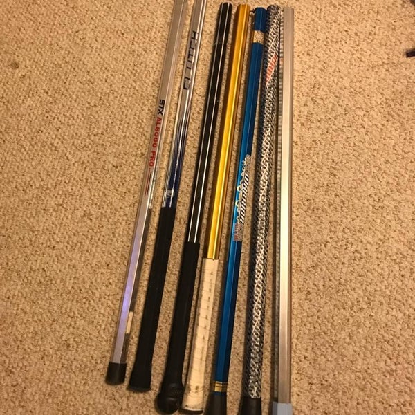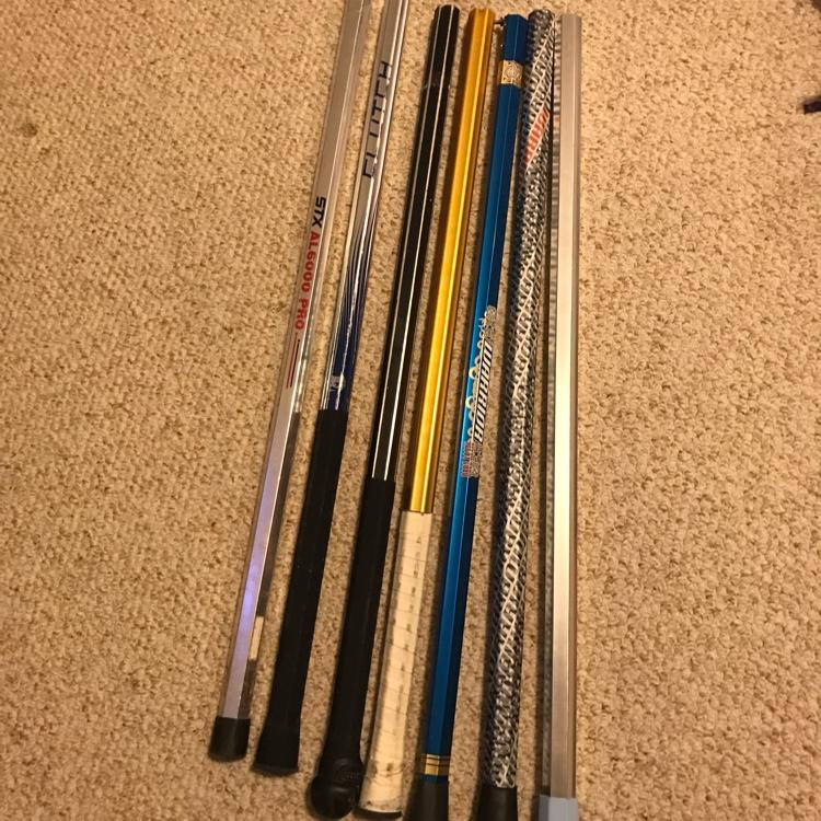 Assorted shafts at $10 each. $50 for the whole lot. From left to right: STX AL6000, Brine Clutch, Heavy Unbranded shaft, Infinity shaft (no graphics), Warrior Alloy 6000, Warrior Kryptolyte, Warrior Kryptolyte (no graphics), all in great shape, if you have any questions dm me, I'll make a deprecate listing if you want to buy.
