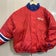 #2736 Starter Mens Red and Blue Down Jacket Buffalo Bills Vintage NFL Puffer