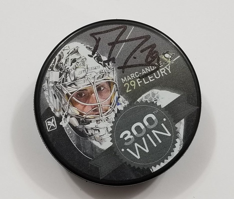 MARC-ANDRE FLEURY Autographed Pittsburgh Penguins 300th WIN NHL Hockey Puck