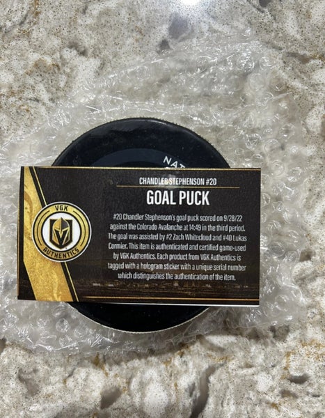 Chandler Stephenson Vegas Golden Knights Goal Puck Game Used Colorado Avalanche
