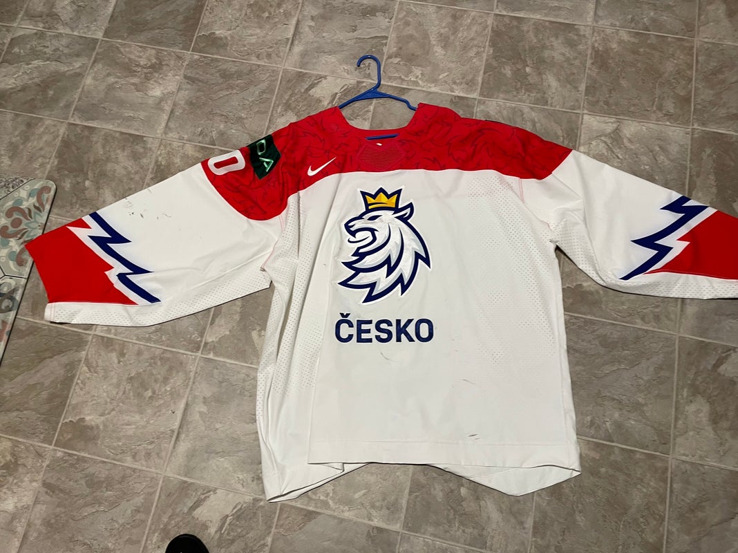 Simon Hrubec game worn IIHF world championship jersey