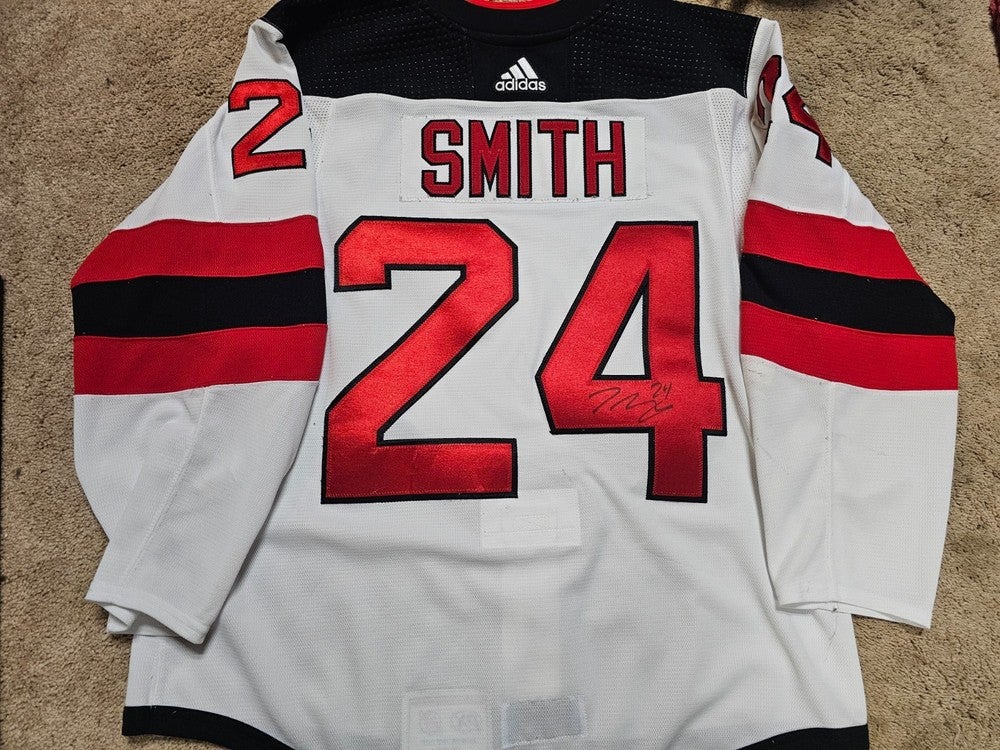 TY SMITH 20'21 Signed Rookie New Jersey Devils Set 2 NHL Game Worn Jersey