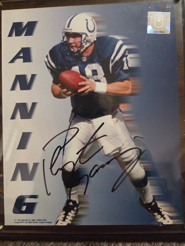 Peyton Manning Autographed picture, rookie card all in the plaque. COA included!