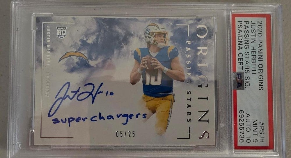 2020 Panini Origins JUSTIN HERBERT Rookie Auto Passing Stars 5/25 Blue PSA 9