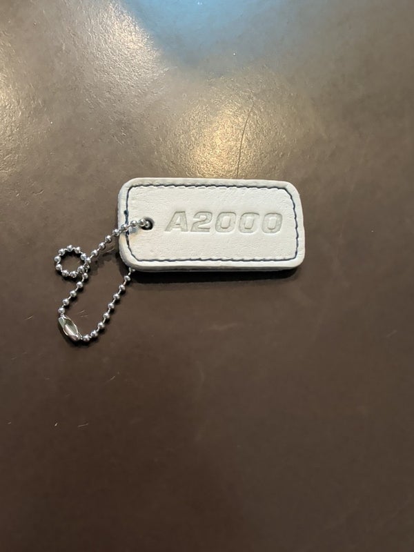 NEW! Wilson A2000 Leather Keychain - Grey leather With Navy Blue Stitching.
