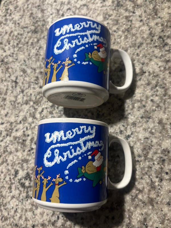 Russ Santa and Reindeer Christmas Ceramic Coffee Mugs Vintage Lot of 2