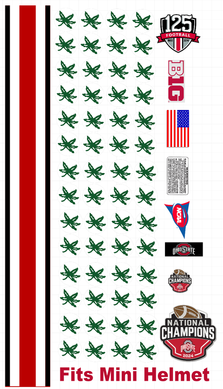 OHIO STATE OSU BUCKEYES Football Helmet Decals One (1) Set mini Size 8 mil Convex Gear Wrap