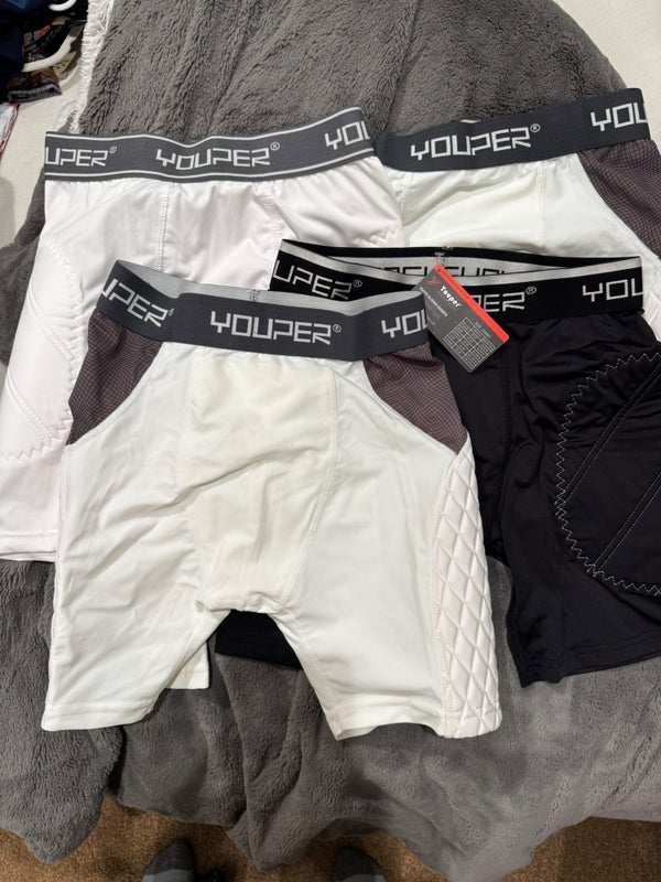 Youper Youth XL Padded Compression Shorts (4 Pairs) w/ Protective Cup – NEW