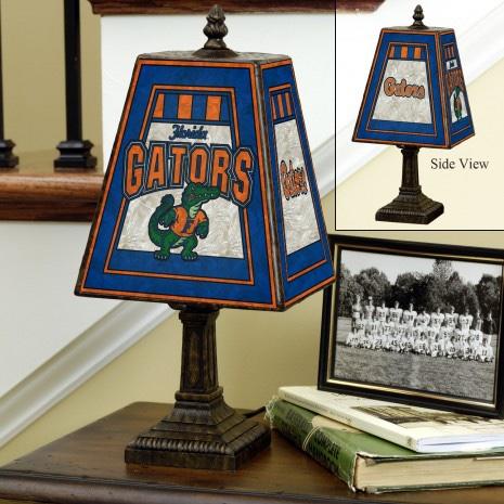 The Art Glass Table Lamp sports team colors and logos on two sides! Inspired by the classic Mission style art glass of the early 20th century, this elegant lamp sits on a brass based resin stand and is a lovely addition to any décor.