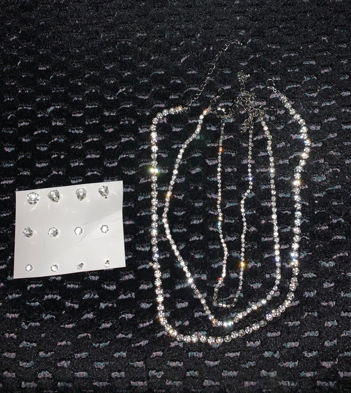 Includes 6 pairs of earrings and 3 necklaces.