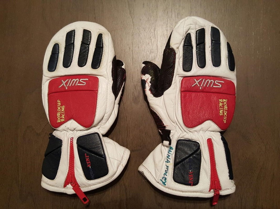 Swix WorldCup Racing Mittens in Youth Size Large. WARM. On/off fast with zippered cuff. Padded fingers, wrist. FIS racer Anna Foley inspired. No holes, no cuts, no tears. Right thumb wear and palm marking as shown. The perfect, inexpensive mitten to get your child through the upcoming cold weather races.