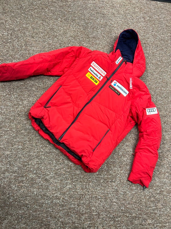 This is a Swiss Ski Team issued jacket from Swiss racer Marc Gisin. I got it brand new in January 2022, and wore it for one ski trip only, so condition is like new. Down-filled so it is toasty warm! Hooded, inside and outside pockets. This is an awesome jacket not available in stores.