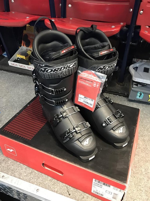 Nordica Patron Pro ski boots. These are expert all mt. Ski boots. They are a 130 ish flex. New. Have U.K. 7/8/9/10 which is equal to 26.5/27.5/28.5/29.5 or 305mm/313mm/323mm/330mm