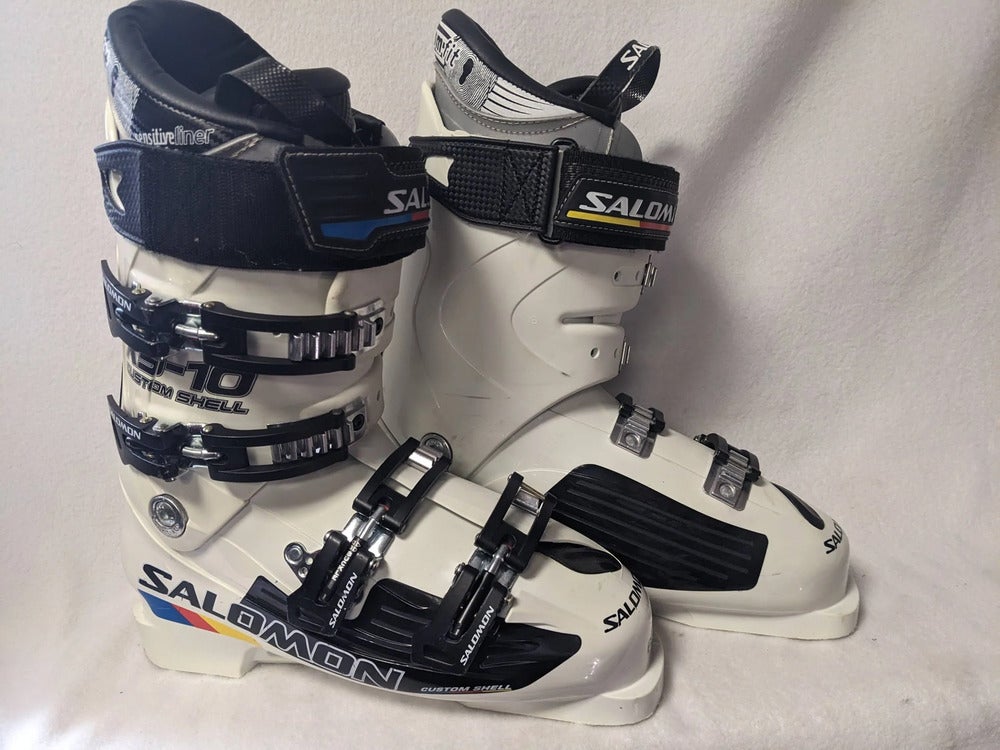 Salomon X3-10 Ski Boots Size 27.5 Color White and Black Condition Used Cleaned Upon Intake