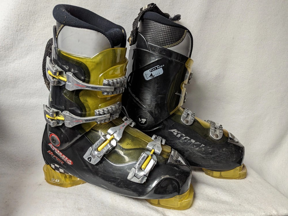 Atomic B Race 958 Hyper Carbon Ski Boots Size 28.5 Color Black, Silver, Red, and Yellow Condition Used Item Cleaned Upon Intake