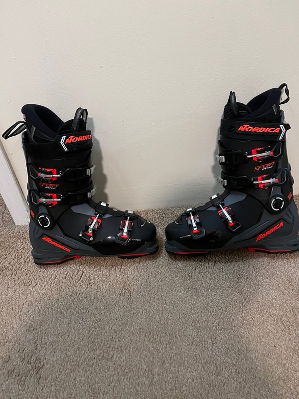 2023 Men's Nordica SportMachine 100. Size 28.5. The boots have a 102mm last and are considered "medium-wide." The Boots are in Great Condition. I skied on them a bit, but they are too large for me. I got new boots and that is why I am selling these. I did put some foam pads them in, but took them out, it left a little spot on the liner it does not impact performance at all. The boots have been skied less than a season and they have a lot of life left. Great option to save some money. The build is exactly the same for 2024. Nordica SportMachine 28.5, 100, 2023