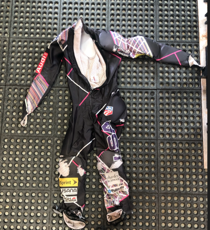 Zipper works, is in generally good shape. Ankle area could need patching up because it is pretty torn up down there.