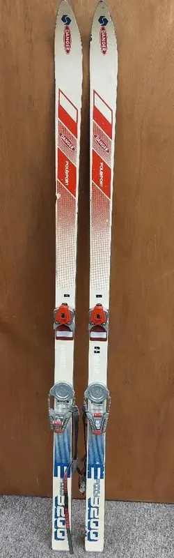 Vintage used Polsport skis model Racing Epoxy 3200 made in Poland from the 1980s with bindings
