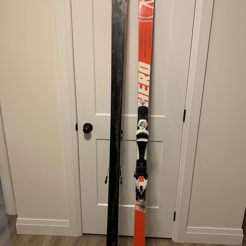 Retail price: $1,000.00Men's Rossignol 212 cm Racing Hero FIS SG Skis With Bindings Max Din 18 (Used)