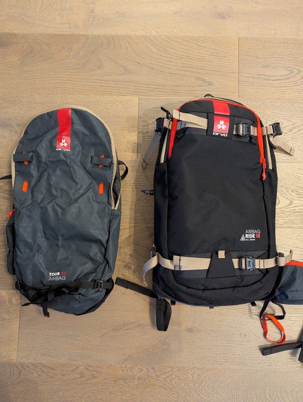 Arva airbag. 32 and 18 liter packs, swap via zipper. Barely used.