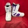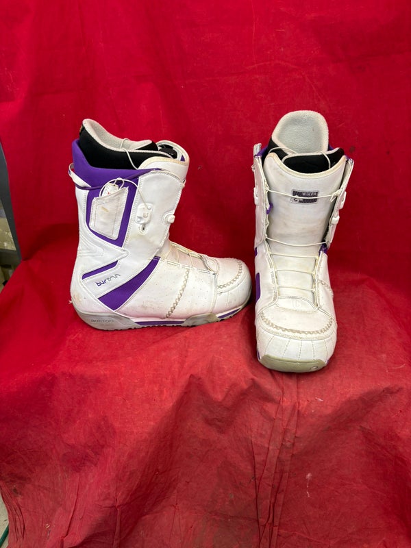 Snowboard Boots: white and purple Burton women's snowboard boots, Size: W 14