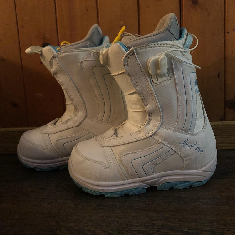 Retail price: $259.00NEW Burton Emerald Womens Snowboard Boots! White Woven Design Size 5 Euro 35