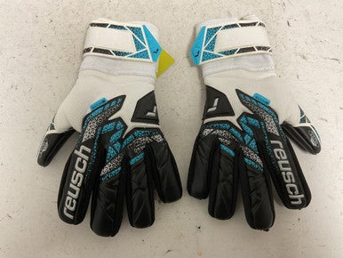Used Reusch ATRAKT SILVER Soccer Goalie Gloves White/Black/Royal 8 11855-S000200284