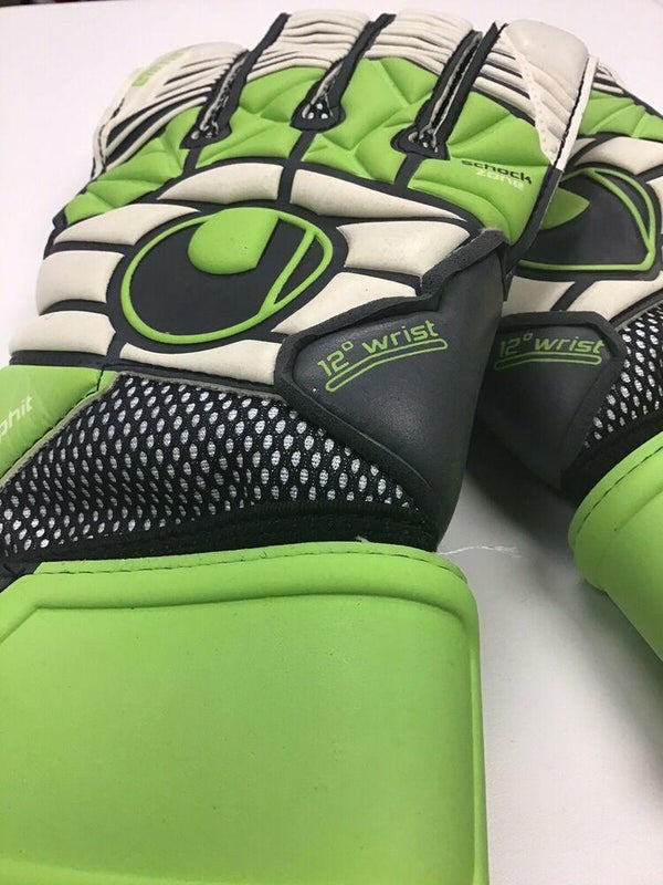 UHLSPORT Super Graphit Black / Green / White Goalkeeper Soccer Gloves Size FIRM PRICE
