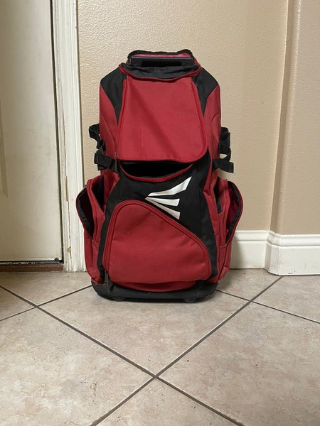 Red rolling softball bag