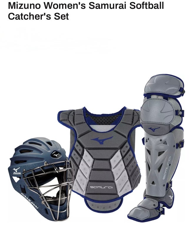 Adult Mizuno Fast Pitch Samurai Catcher's Combo Grey/Navy 14-15"
