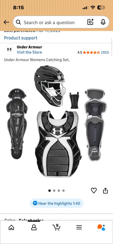 Youth Under Armour Catcher's Combo (New)