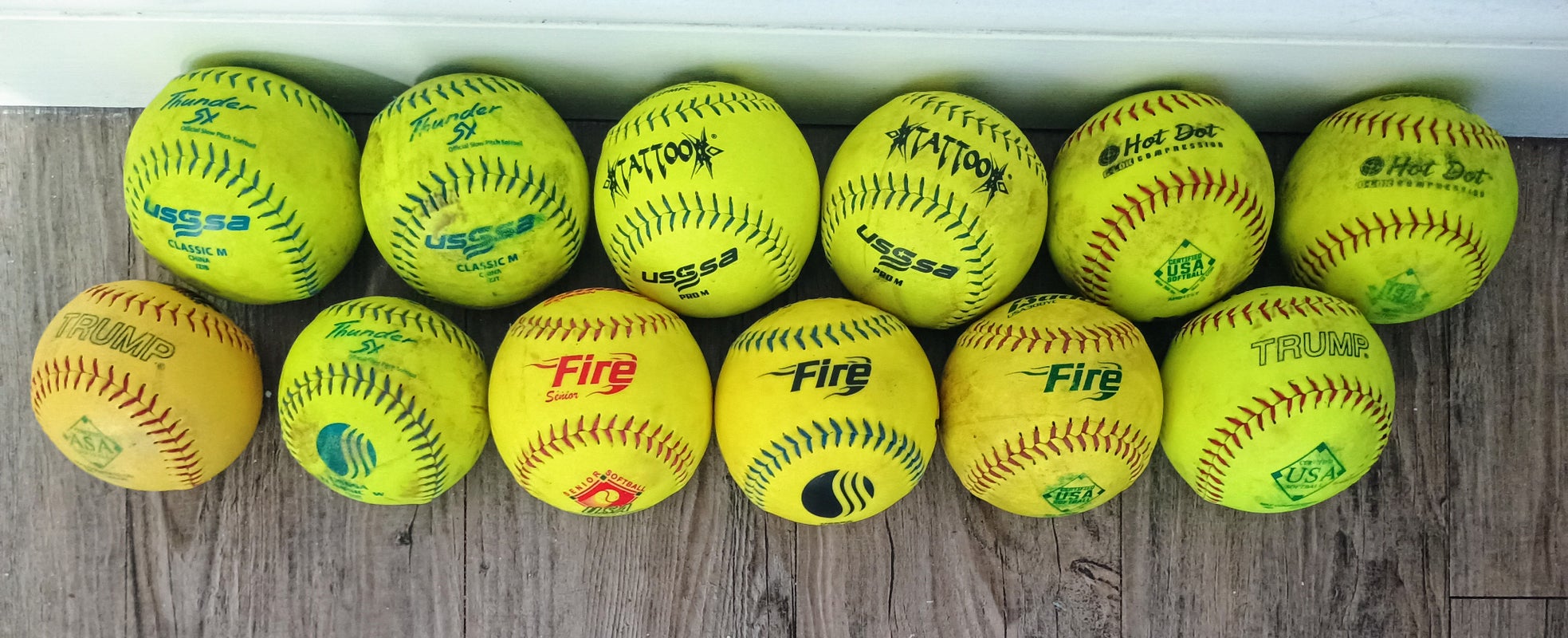 12 used softballs. Various brands. all playable!