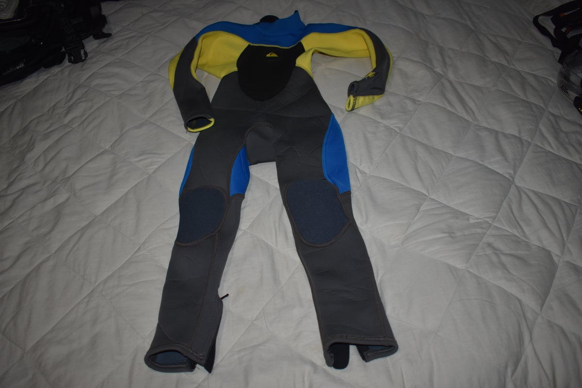 Quiksliver Syncro Fullsuit Wetsuit w/ Back Zip, 3/2mm, Black/Blue/Yellow