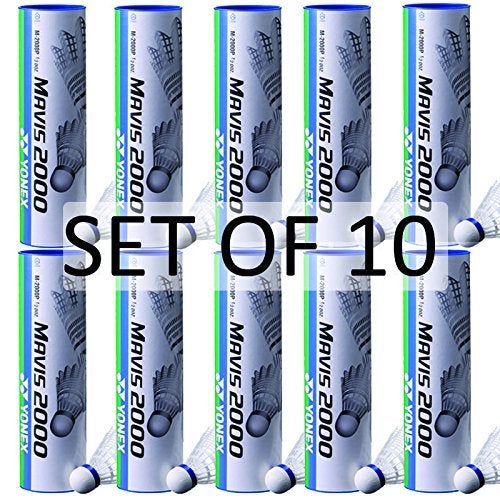 YONEX Mavis 2000 Nylon White Badminton Shuttlecock (10 Tubes pkg)